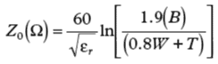 帶狀線的特性阻抗設(shè)計(jì)公式如公式7所示。