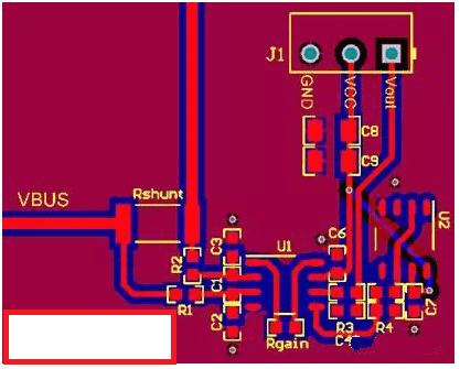 第二個誤差與INA增益設置電阻Rgain有關。U1引腳到Rgain焊盤的長度比實際需要的長度要長,因此會產生額外的電阻和電容。由于增益取決于INA增益設置引腳、引腳1和引腳8之間的電阻,因此額外的電阻可能會帶來錯誤的目標增益。由于INA的增益設置引腳連接到INA中的反饋部分,額外的電容可能會導致穩(wěn)定性問題。因此,確保連接增益設置電阻的線路盡可能短。